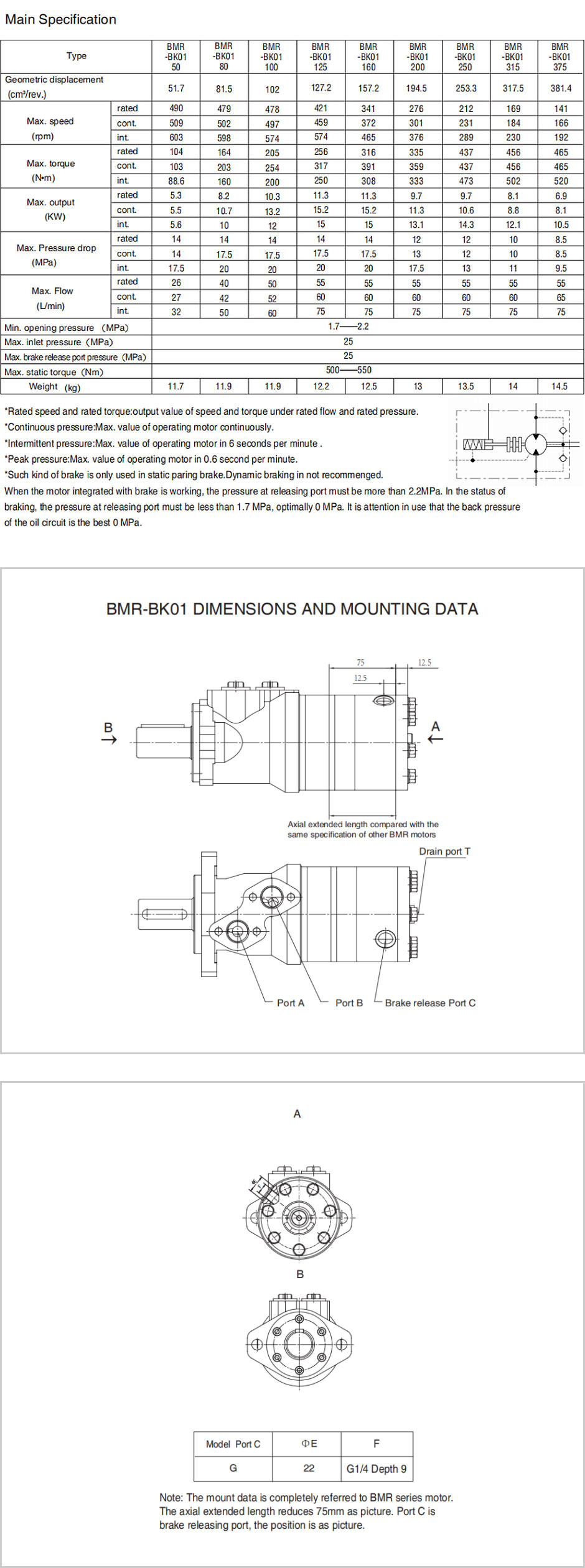 BMR-BK01 Series hydraulic motor with brake extending BMR series motor range. This motor has an integrated holding brake.